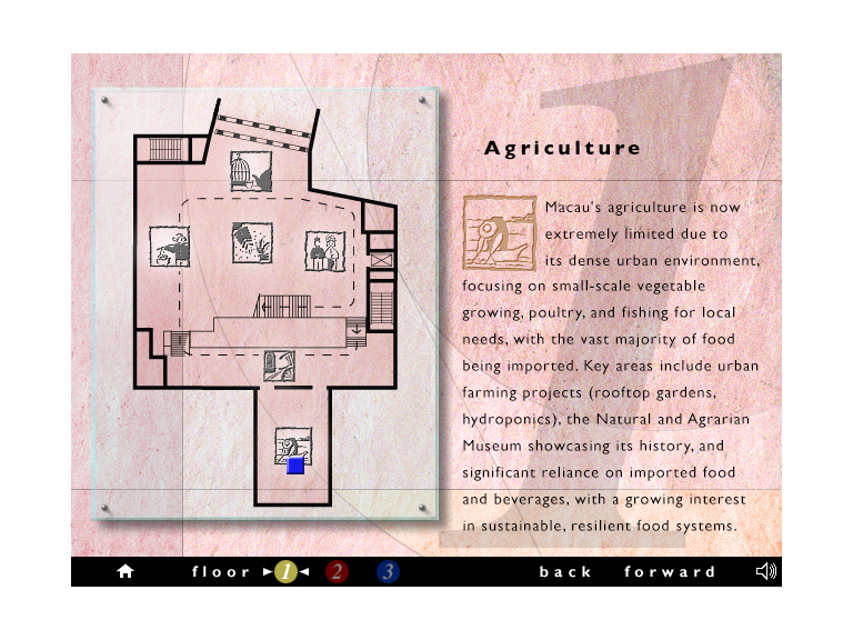 The Museum of Macau was installing new interactive guide kiosks around their exhibitions spaces. Combining design principles defined by other design elements at the museum. The interactive guide explored how to plan and implement visitors trips around the museum and inviting them to view the outstanding displays.